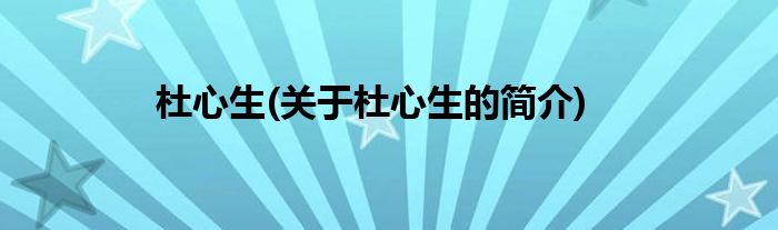 本文关于杜心生的简介就讲解完毕,希望对大家有所帮助。