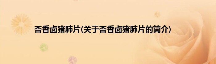 本文关于杏香卤猪肺片的简介就讲解完毕,希望对大家有所帮助。