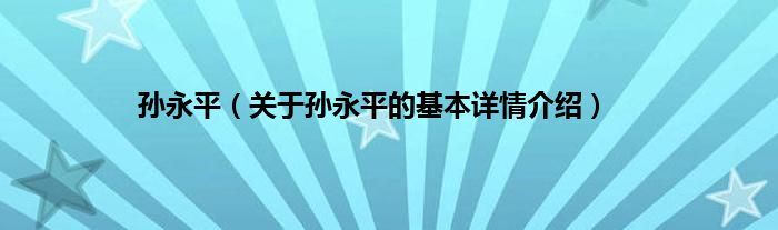 本文关于孙永平的基本详情介绍就讲解完毕,希望对大家有所帮助。