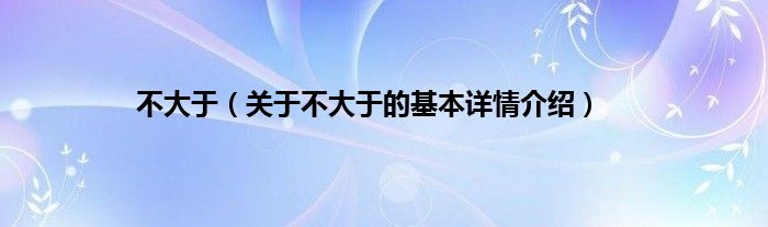 大家好我是小蝌蚪,不大于,关于不大于的基本详情介绍很多人还不知道,那么现在让我们一起来看看吧!