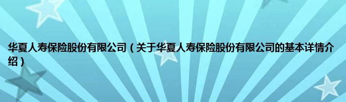 本文关于华夏人寿保险股份有限公司的基本详情介绍就讲解完毕,希望对大家有所帮助。