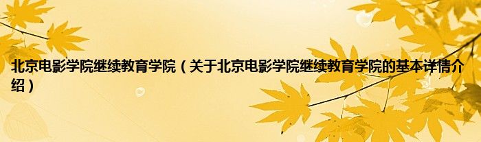 本文关于北京电影学院继续教育学院的基本详情介绍就讲解完毕,希望对大家有所帮助。