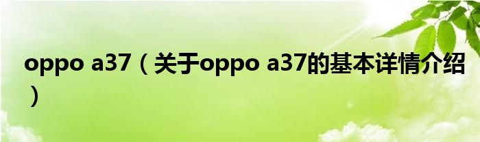 本文关于oppo a37的基本详情介绍就讲解完毕,希望对大家有所帮助。