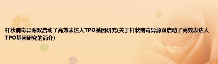 本文关于杆状病毒异源双启动子高效表达人TPO基因研究的简介就讲解完毕,希望对大家有所帮助。