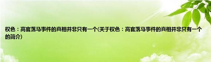 本文关于权色:高官落马事件的真相并非只有一个的简介就讲解完毕,希望对大家有所帮助。