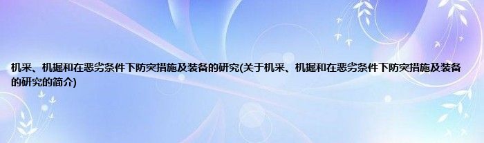 本文关于机采、机掘和在恶劣条件下防突措施及装备的研究的简介就讲解完毕,希望对大家有所帮助。