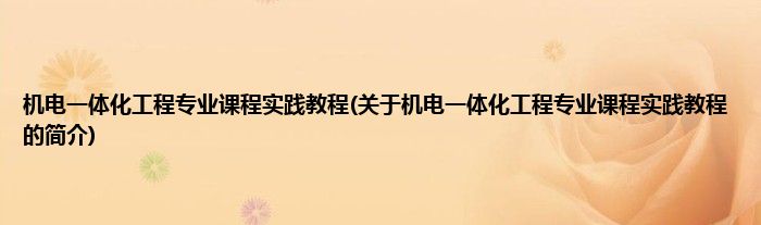 本文关于机电一体化工程专业课程实践教程的简介就讲解完毕,希望对大家有所帮助。