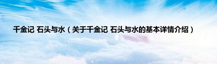 本文关于千金记 石头与水的基本详情介绍就讲解完毕,希望对大家有所帮助。