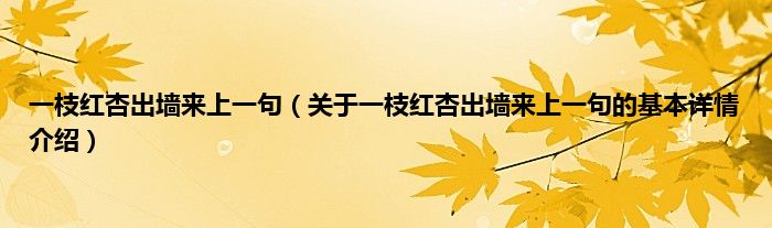 本文关于一枝红杏出墙来上一句的基本详情介绍就讲解完毕,希望对大家有所帮助。