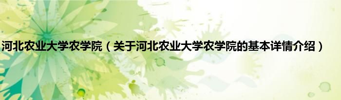 本文关于河北农业大学农学院的基本详情介绍就讲解完毕,希望对大家有所帮助。