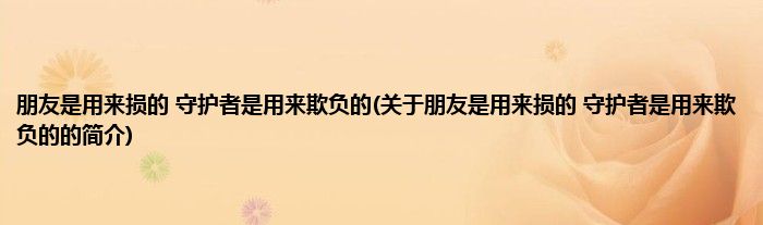 本文关于朋友是用来损的,守护者是用来欺负的的简介就讲解完毕,希望对大家有所帮助。