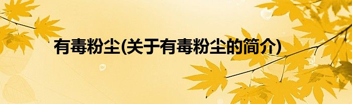 大家好,有毒粉尘,关于有毒粉尘的简介很多人还不知道,现在让我们一起来看看吧!