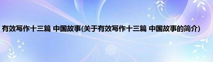 有效写作十三篇中国故事(关于有效写作十三篇中国故事的简介)