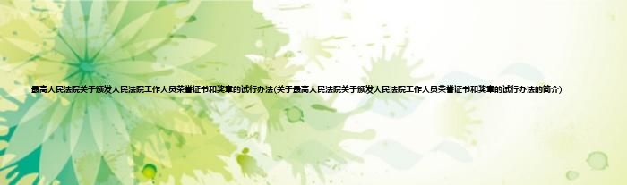 大家好,最高人民法院关于颁发人民法院工作人员荣誉证书和奖章的试行办法,关于最高人民法院关于颁发人民法院工作人员荣誉证书和奖章的试行办法的简介很多人还不知道,现在让我们一起来看看吧!