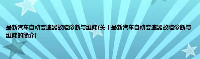 本文关于最新汽车自动变速器故障诊断与维修的简介就讲解完毕,希望对大家有所帮助。