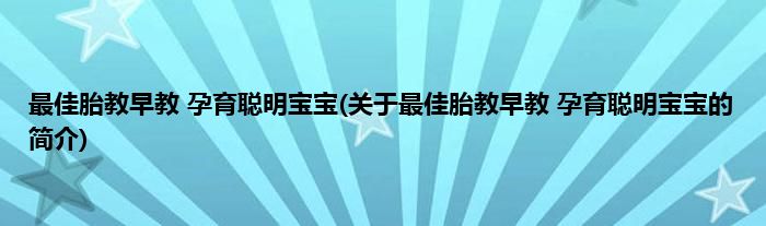 大家好,最佳胎教早教,孕育聪明宝宝,关于最佳胎教早教,孕育聪明宝宝的简介很多人还不知道,现在让我们一起来看看吧!