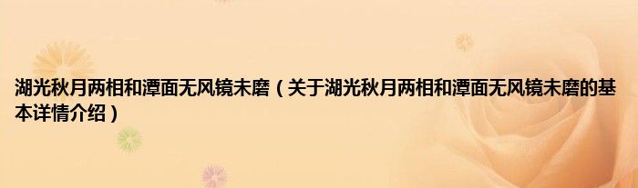 本文关于湖光秋月两相和潭面无风镜未磨的基本详情介绍就讲解完毕,希望对大家有所帮助。