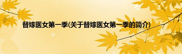 大家好,替嫁医女第一季,关于替嫁医女第一季的简介很多人还不知道,现在让我们一起来看看吧!
