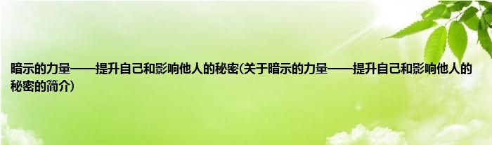 本文关于暗示的力量——提升自己和影响他人的秘密的简介就讲解完毕,希望对大家有所帮助。