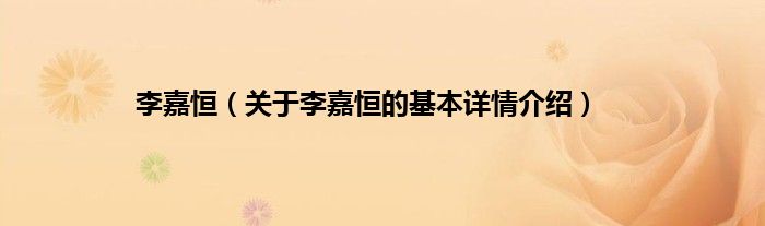本文关于李嘉恒的基本详情介绍就讲解完毕,希望对大家有所帮助。