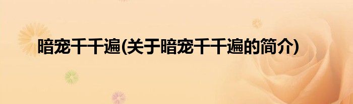 本文关于暗宠千千遍的简介就讲解完毕,希望对大家有所帮助。