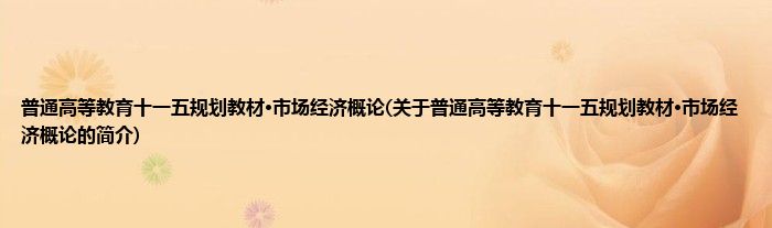 本文关于普通高等教育十一五规划教材·市场经济概论的简介就讲解完毕,希望对大家有所帮助。