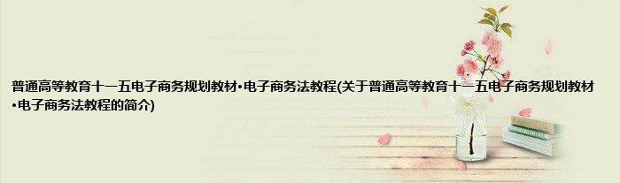 大家好,普通高等教育十一五电子商务规划教材·电子商务法教程,关于普通高等教育十一五电子商务规划教材·电子商务法教程的简介很多人还不知道,现在让我们一起来看看吧!
