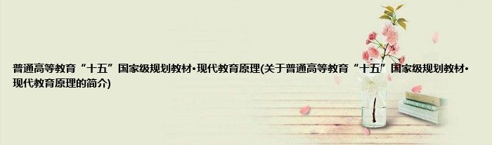 1、 《普通高等教育"十五"国家级规划教材·现代教育原理》主要内容:这是教育部普通高等教育“十五”国家级规划教材。