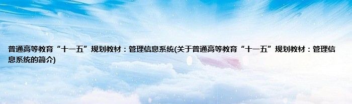 本文关于普通高等教育“十一五”规划教材:管理信息系统的简介就讲解完毕,希望对大家有所帮助。