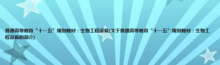 本文关于普通高等教育“十一五”规划教材:生物工程设备的简介就讲解完毕,希望对大家有所帮助。