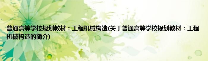 本文关于普通高等学校规划教材:工程机械构造的简介就讲解完毕,希望对大家有所帮助。