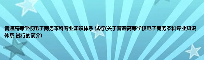 本文关于普通高等学校电子商务本科专业知识体系 试行的简介就讲解完毕,希望对大家有所帮助。