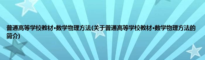本文关于普通高等学校教材·数学物理方法的简介就讲解完毕,希望对大家有所帮助。