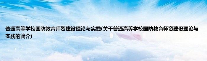 本文关于普通高等学校国防教育师资建设理论与实践的简介就讲解完毕,希望对大家有所帮助。