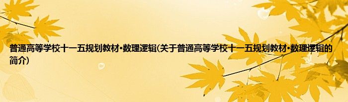 本文关于普通高等学校十一五规划教材·数理逻辑的简介就讲解完毕,希望对大家有所帮助。