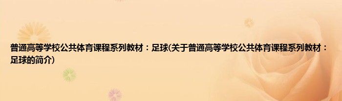 本文关于普通高等学校公共体育课程系列教材:足球的简介就讲解完毕,希望对大家有所帮助。