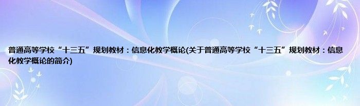 本文关于普通高等学校“十三五”规划教材:信息化教学概论的简介就讲解完毕,希望对大家有所帮助。