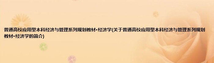 本文关于普通高校应用型本科经济与管理系列规划教材·经济学的简介就讲解完毕,希望对大家有所帮助。