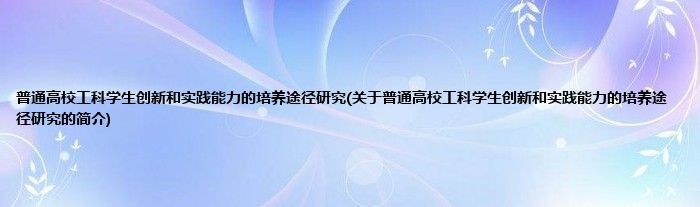 大家好,普通高校工科学生创新和实践能力的培养途径研究,关于普通高校工科学生创新和实践能力的培养途径研究的简介很多人还不知道,现在让我们一起来看看吧!