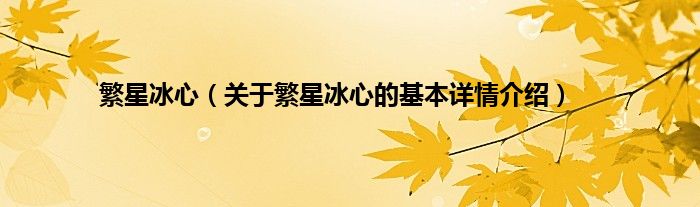 本文关于繁星冰心的基本详情介绍就讲解完毕,希望对大家有所帮助。