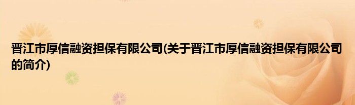本文关于晋江市厚信融资担保有限公司的简介就讲解完毕,希望对大家有所帮助。