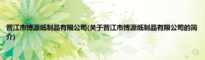 本文关于晋江市博源纸制品有限公司的简介就讲解完毕,希望对大家有所帮助。