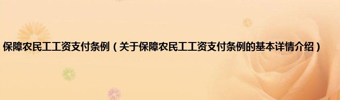 本文关于保障农民工工资支付条例的基本详情介绍就讲解完毕,希望对大家有所帮助。