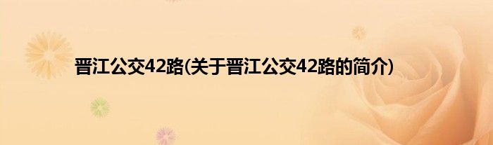 大家好,晋江公交42路,关于晋江公交42路的简介很多人还不知道,现在让我们一起来看看吧!