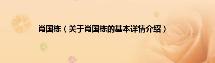 本文关于肖国栋的基本详情介绍就讲解完毕,希望对大家有所帮助。
