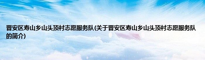 1、 晋安区寿山乡山头顶村志愿服务队是由寿山乡领导下的志愿团体。
