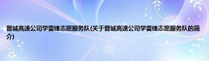 大家好,晋城高速公司学雷锋志愿服务队,关于晋城高速公司学雷锋志愿服务队的简介很多人还不知道,现在让我们一起来看看吧!