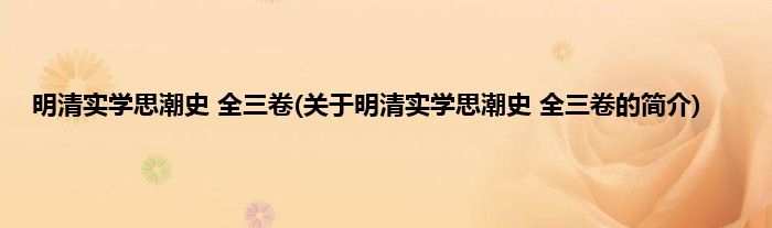 大家好,明清实学思潮史 全三卷,关于明清实学思潮史 全三卷的简介很多人还不知道,现在让我们一起来看看吧!