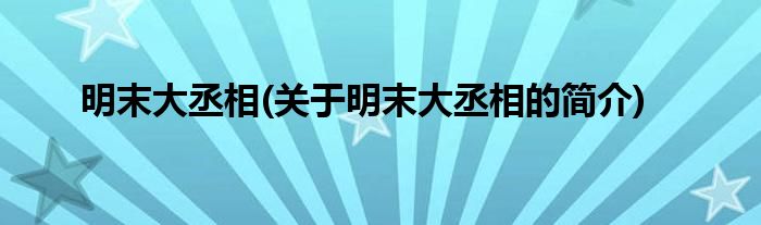 本文关于明末大丞相的简介就讲解完毕,希望对大家有所帮助。