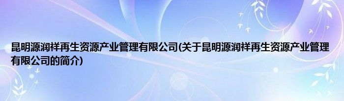 本文关于昆明源润祥再生资源产业管理有限公司的简介就讲解完毕,希望对大家有所帮助。